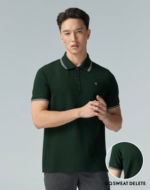 GQ Perfect Polo™ Twin Tipped เสื้อโปโลสะท้อนน้ำสีพื้น มีลายที่คอปกและปลายแขน