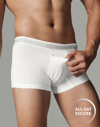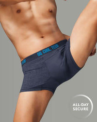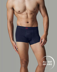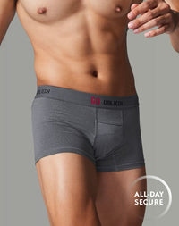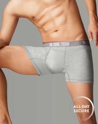 กางเกงใน GQ Cool Tech™ รุ่น All-Day Secure กกน.ชาย ทรง Boxer Brief ที่มาพร้อม GQ Pouch ชิ้นส่วนผ้าพิเศษที่จะประคับประคองไข่ของคุณให้ลงหลุม อยู่ทรง ลดเสียดสี ไม่แลบ และยังมีเทคโนโลยี GQ Cool Tech™ หมึกผสมเจลเย็นพิมพ์ลงบนใยผ้า ช่วยให้ผ้าเย็นลงสูงสุด 2°C เมื่อสวมใส่ เสริมด้วยผาตาข่ายละเอียด ระบายอากาศ เย็นสบาย ไม่อึดอัด ทำธุระก็ง่ายด้วย GQ Easy Access ช่องเปิดด้านหน้า