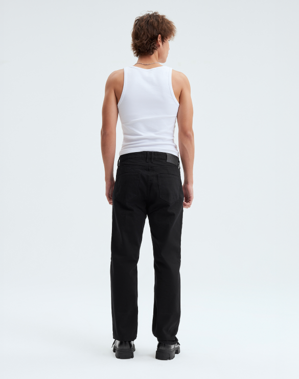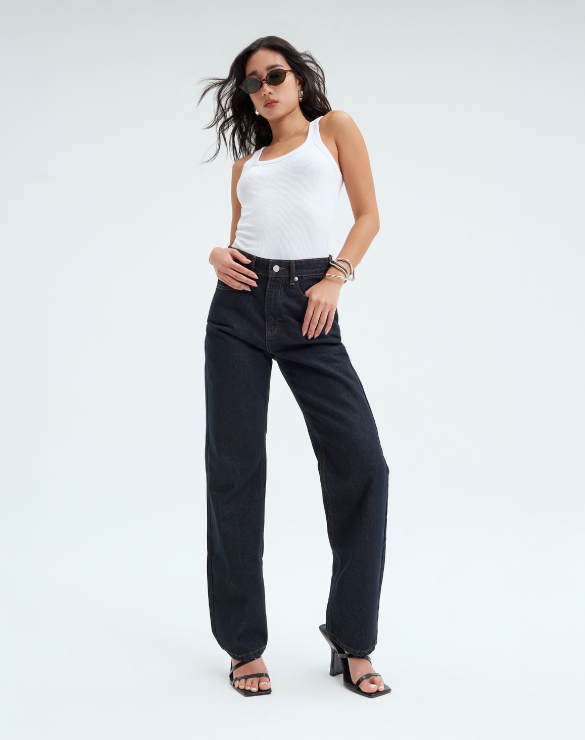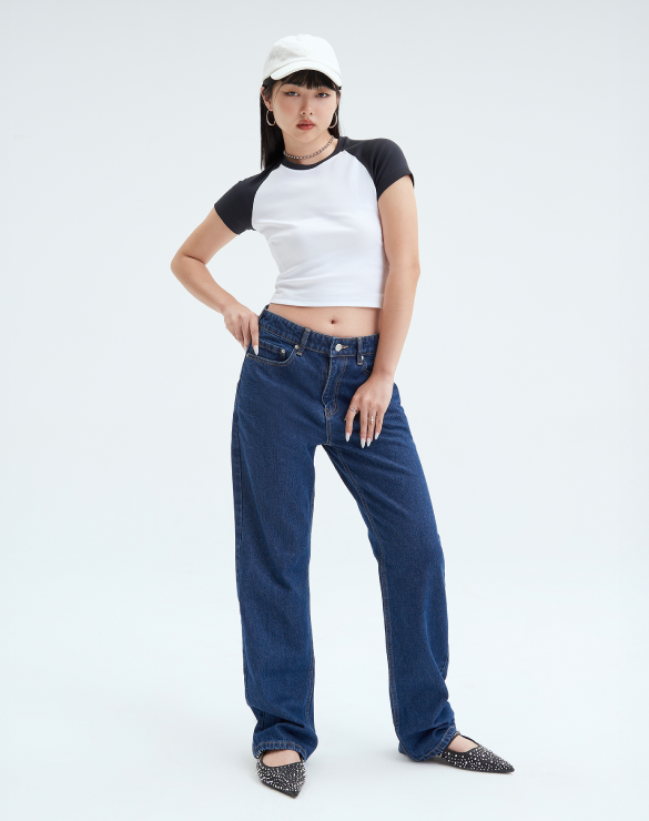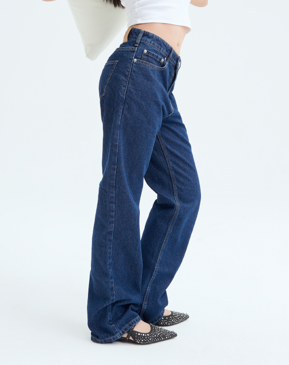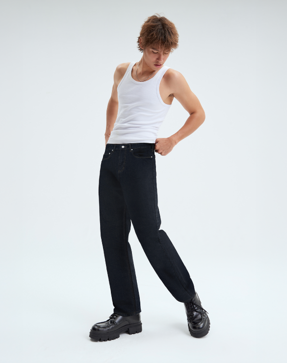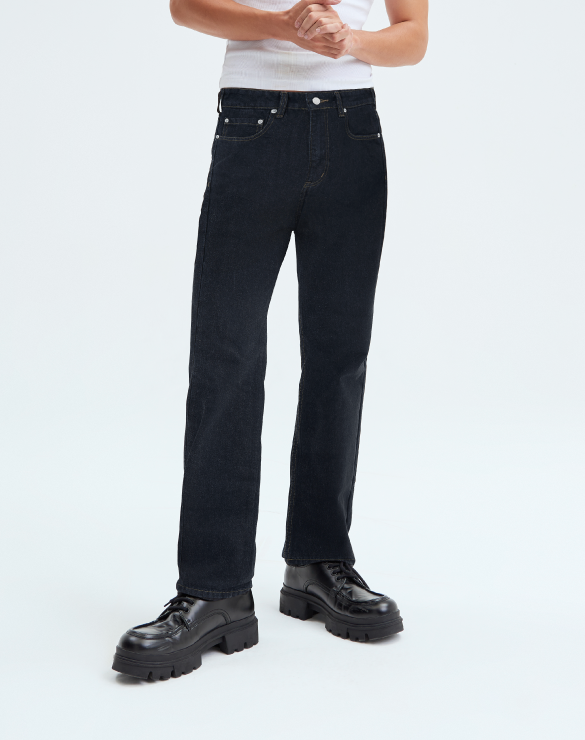 กางเกงยีนส์ทรงตรง ลุคเท่แบบคลาสสิก ทรงตรงพอดีตัว ไม่รู้สึกรัดหรือหลวมจนเกินไป ใส่แล้วดูสมาร์ท ไม่ว่าจะจับคู่กับเสื้อเชิ้ตทำงาน