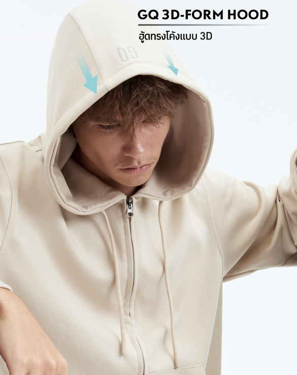 ตัดเย็บที่สร้างให้ฮู้ดเป็นทรงอย่างเป็นธรรมชาติ หมวกฮู้ดจึงสวมใส่แล้วเป็นทรงสวย