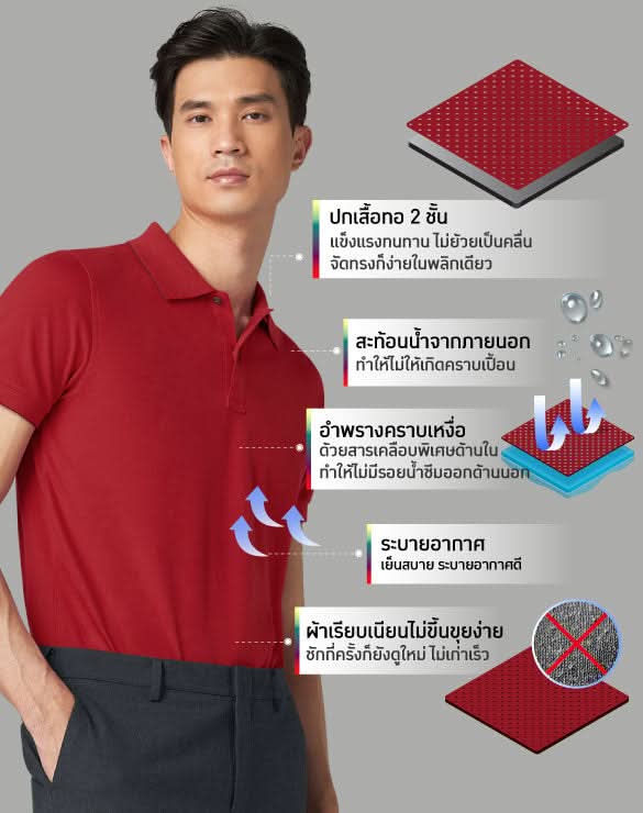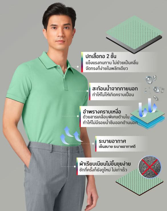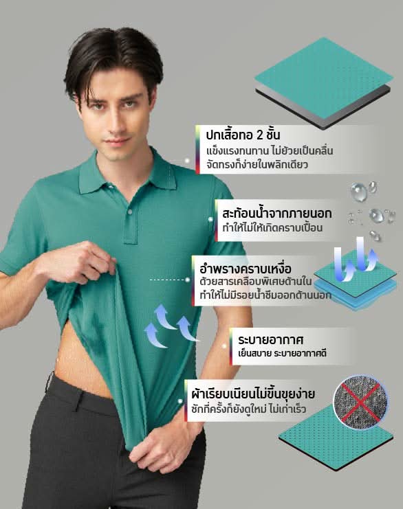 เนื้อผ้านวัตกรรมพิเศษ ซับน้ำด้านใน เหงื่อออกก็ไม่ซึมเป็นคราบออกมาด้านนอก