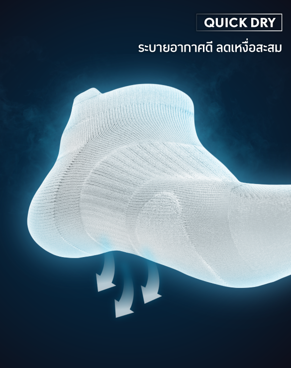 ถุงเท้าผ้านุ่ม บล็อกกลิ่นหาย สบายทุกก้าว ระบายอากาศดี หุ้มข้อ พร้อมแถบผ้านุ่มหลังข้อเท้ากันรองเท้ากัด