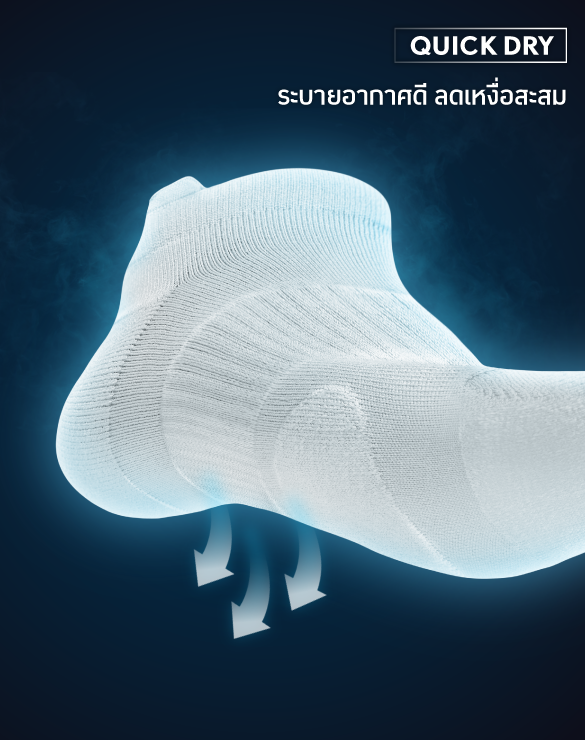 ด้วยนวัตกรรมควบคุมกลิ่น Odor Control Technology ที่มีลักษณะเหมือนฟองอากาศทรงกลมสองชั้น ชั้นนอกทำหน้าที่เป็นแม่เหล็กดึงดูดโมเลกุลกลิ่นเหม็นและชั้นในทำหน้าที่ดูดซับโมเลกุลกลิ่นเหม็นไว้ภายในถุงเท้า ไม่ให้กลิ่นไม่พึงประสงค์เล็ดลอดออกมาขณะสวมใส่ ซึ่งกลิ่นเหม็น(เท้า)นี้จะถูกกำจัดออกหลังจากซักทำความสะอาดถุงเท้า